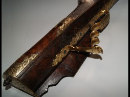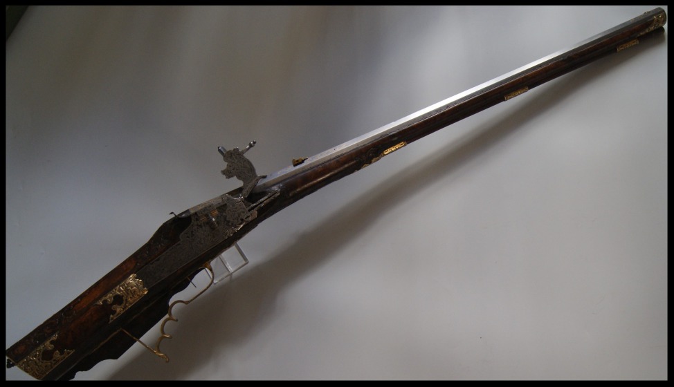 L'arquebuserie autrichienne se distingue par la persistance de la platine à rouet et ce jusqu'au début du XIXème siècle. Durant la première moitié du XVIIIème siècle, la platine à rouet fut construite de facon plus compacte en supprimant le bouton poussoir permettant de renvoyer le couvre basinet et en placant le rouet à l'inérieur de la platine lui conférant ainsi une surface plane plus propice à développement du décor gravé.
