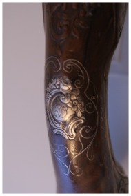 sculptée et filigranée d'argent, pièce de pouce argent monogrammée.
